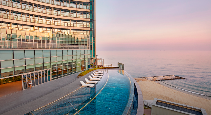 추천 이유: 해운대 바다를 바라보며 여유로운 시간을 즐길 수 있는 파라다이스 호텔은 5성급 호텔로 최고급 시설을 자랑합니다. 특히 인피니티 풀에서 바다와 하늘을 동시에 느낄 수 있어요. 🏊♀️💙
